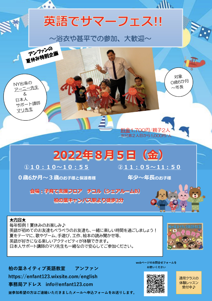 アンファンの特別企画!英語でサマーフェス!!〜浴衣や甚平での参加、歓迎〜
