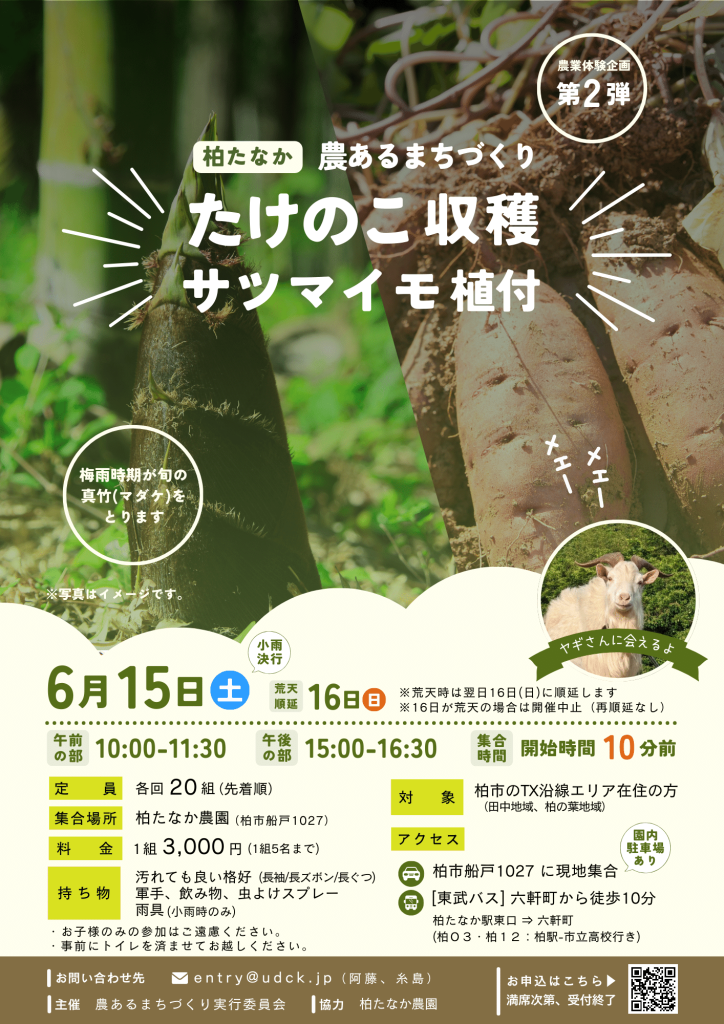 - アクセス:【車でお越しの方】柏たなか農園(柏市船戸1027)に現地集合