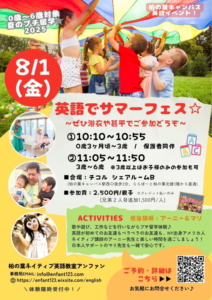 0歳~6歳対象 夏のプチ留学☆2025『英語でサマーフェス☆』