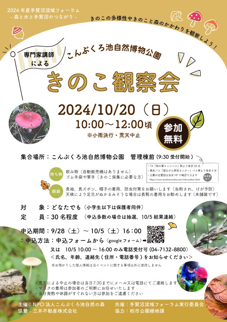 スマートシティに隣接するこんぶくろ池自然博物公園で、きのこの多様性や、きのこと森のかかわりを観察しよう!