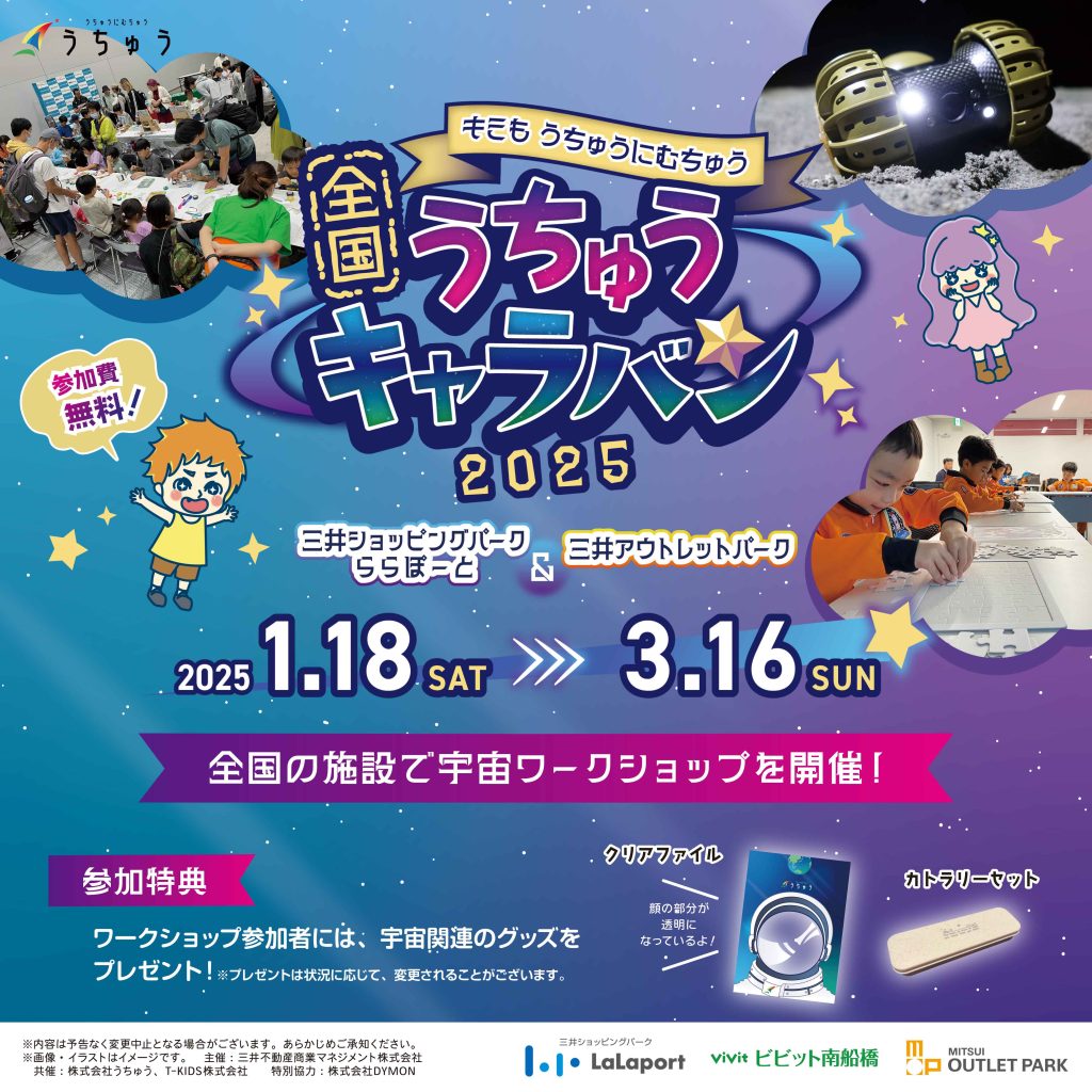 全国うちゅうキャラバン2025 イベント詳細 日程: 2025年2月8日 イベント詳細 日付: 2025年2月8日 11:00 AM – 9日 5:30 PM カテゴリ: アート・芸術/Art, イベント/event, 子どもも参加できる/kids friendly, 柏の葉まちまるごと夏あそび / Kashiwano-Ha Summer Fes., 無料で参加できる/free 全国の15施設の三井ショッピングパーク ららぽーと・三井アウトレットパークにて小学生向けの宇宙イベントを開催! 「ロケットはどうやって飛ぶの?」「宇宙で生活するには?」など、宇宙や科学の秘密を学びながら体験できるワークショップが盛りだくさん。(施設によって開催内容が異なります) 宇宙服を着たスタッフがお迎えし、子どもから大人まで楽しめる内容です。科学の面白さや宇宙の壮大さを感じられる、特別な体験をぜひご家族でお楽しみください! ららぽーと柏の葉では、2025年2月8日(土)9日(日)に、「望遠鏡づくり」を行います! 望遠鏡はどうして遠くが見えるの?仕組みを学んで、月面のクレーターが見える倍率15倍望遠鏡を制作します。(作ったものはお持ち帰りいただきます) 対象:小学1〜6年生 参加費:無料 イベント詳細 開催日:24/02/08-24/02/09 時間:11:00-17:30 開催場所:ららぽーと柏の葉2F クリスタルコート 主催者名:株式会社うちゅう、T-KIDS株式会社 問合せ先:info@tkids.co イベントURL:https://uchucaravan2025.uchu-next.space/ UDCKの公式アカウントを友だちに追加すると、気になるイベント情報がスマホに届きます。 メールニュース登録 UDCKでは不定期でメールニュースを配信しています。 柏の葉から最新のまちづくり情報をお届けします。 ◉メールアドレス * ◉性別 *男性女性未選択 ◉お住まい(最寄り駅) *柏の葉キャンパス柏たなかその他柏市市外 /* real people should not fill this in and expect good things – do not remove this or risk form bot signups */