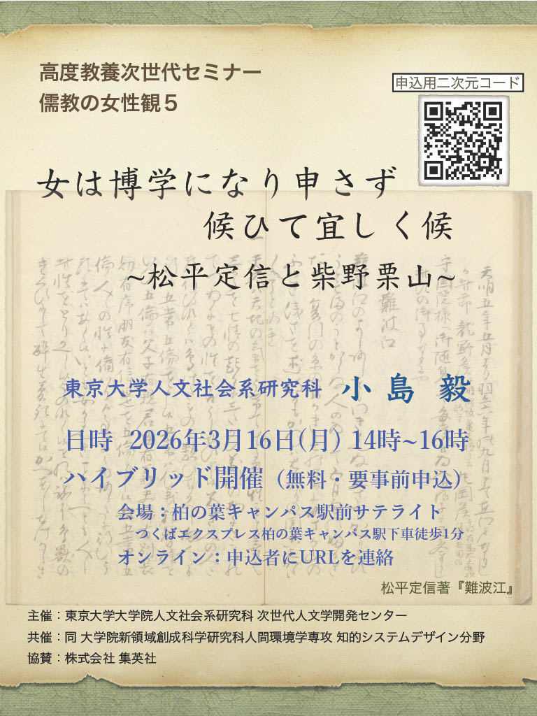 第11回高度教養次世代セミナー 「女は博学になり申さず候ひて宜しく候~松平定信と柴野栗山~ 」(儒教の女性観5)