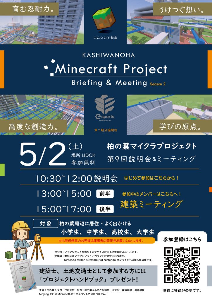 マインクラフトで柏の葉キャンパス駅を再現する柏の葉マイクラプロジェクトの第9回目のミーティングを開催します。